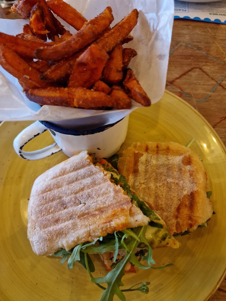 Amazing gluten free options and very dog friendly - dog blankets, bowls and treats at the entrance. Only slight downside was 2 of the burgers were missing tomato despite it being an ingredient on the menu and the chips weren’t quite as hot as expected, but food was very nice.